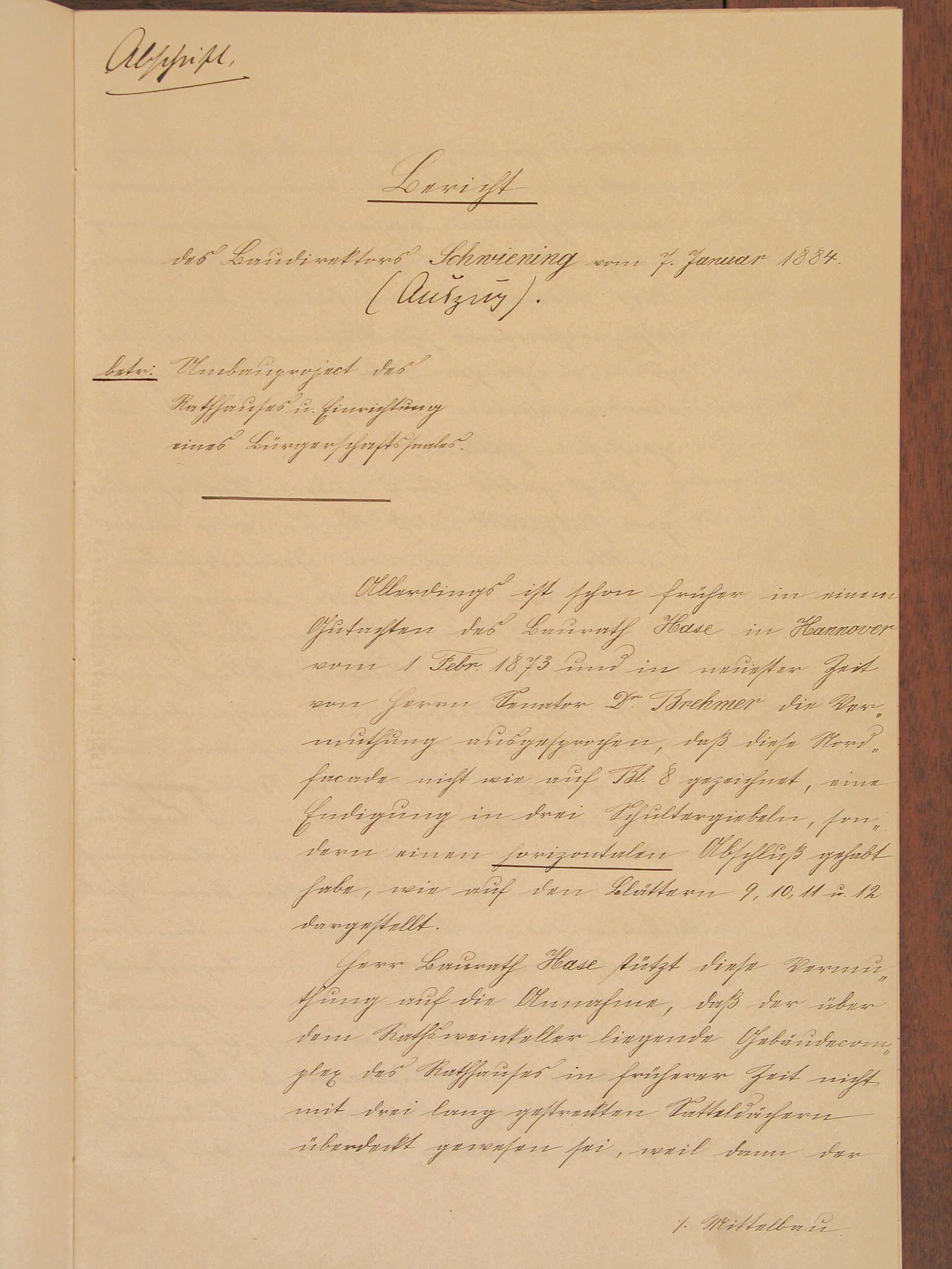 Ein mehrseitiger handgeschriebener Bericht, adressiert an Karl v. Amira. Darin befindet sich eine sehr grobe Grundrißskizze des Lübecker Rathauses.