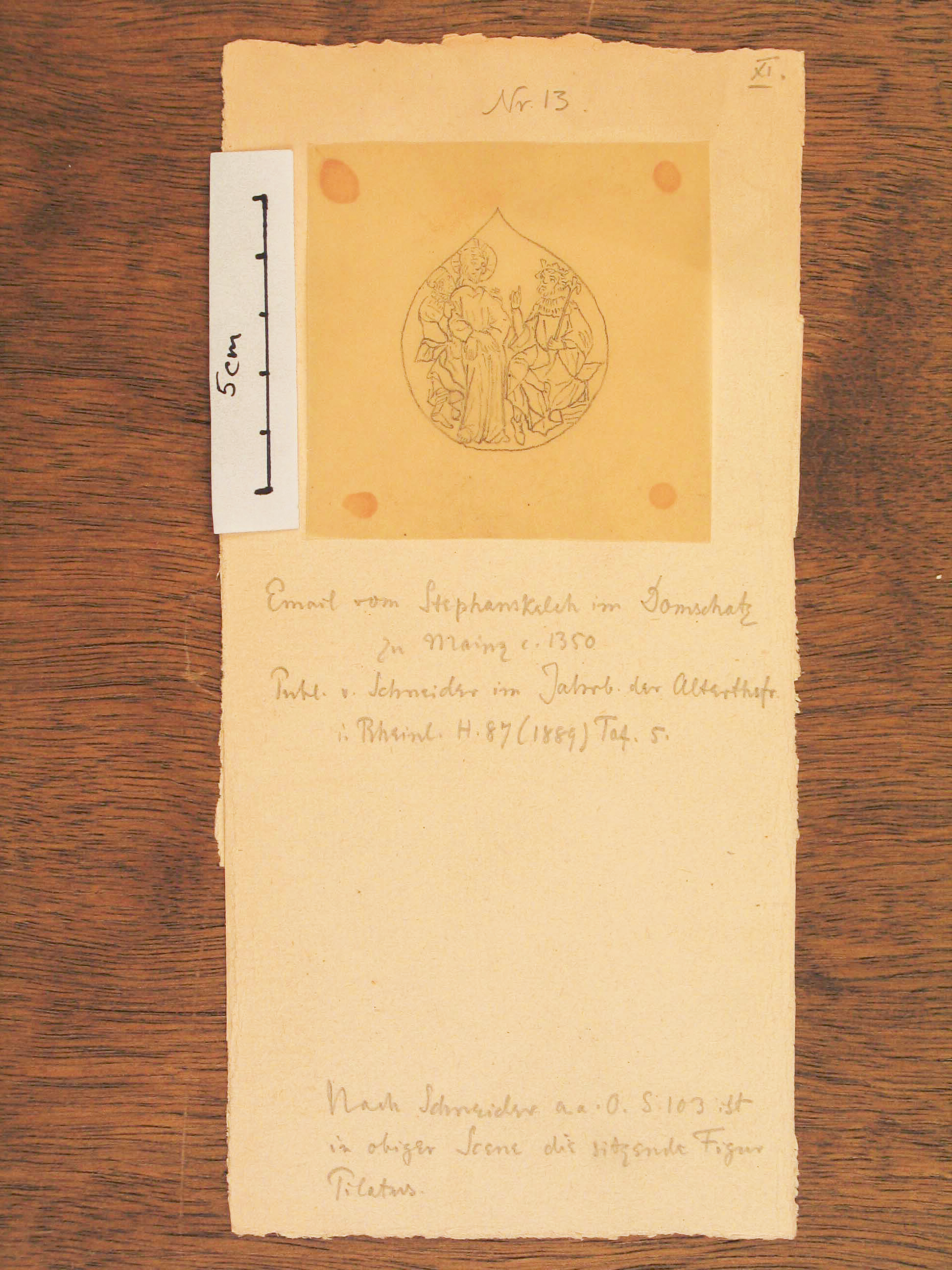 Publ.v. Schneider im Jahrb.der Alterthsfr. i. Rheinl. H.87 (1889) Taf.5. Nach Schneider a.a.O. S.113 ist die in obiger Scene die sitzende Figur Pilatus.Inhalt