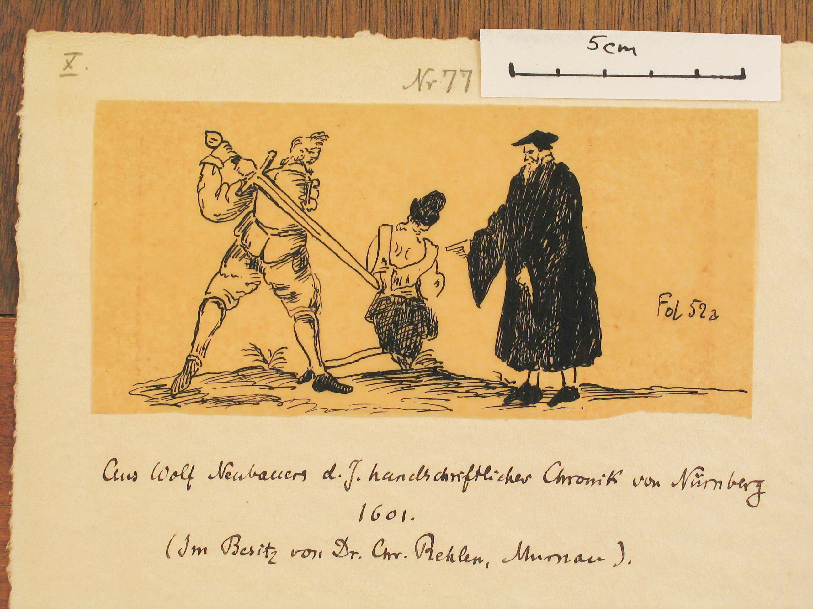 Auf Wolf Neubauers d.J. handschriftlicher Chronik von Nürnberg 1601. (Im Besitz von Dr. Chr.Rehlen, Murnau).Inhalt