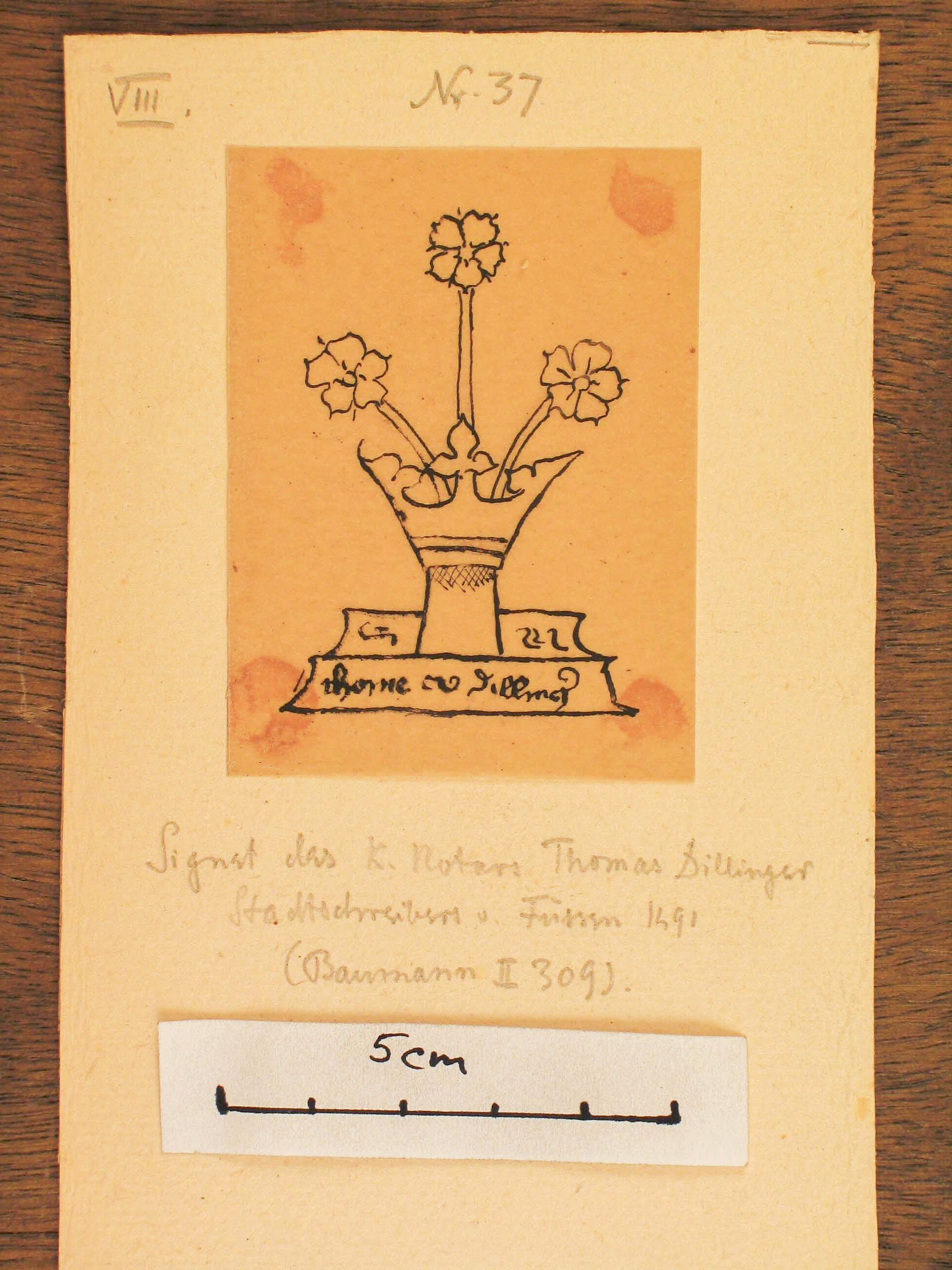 Signat des K.Notars Thomas Dillinger Stadtschreibers v.Füssen 1491