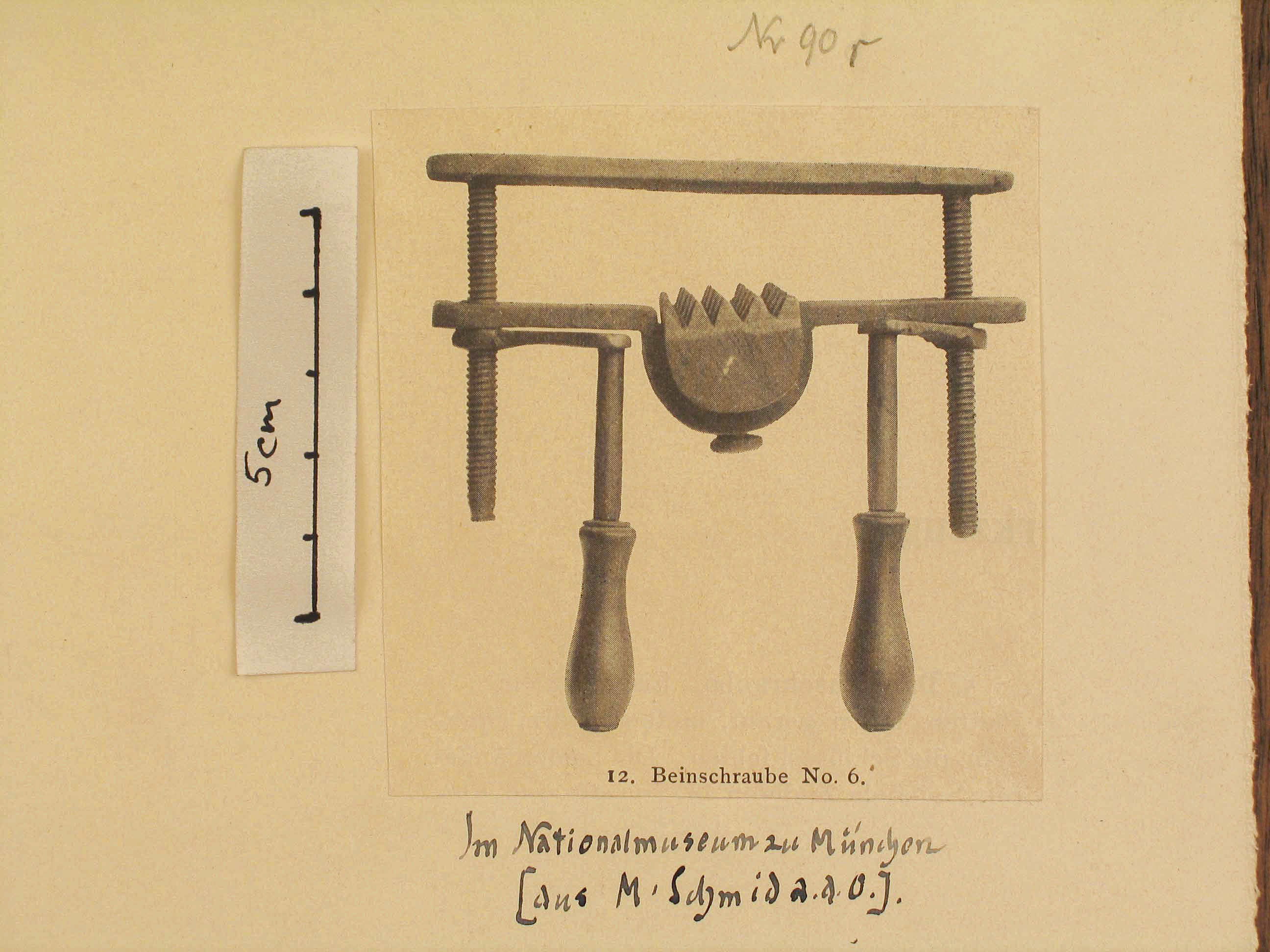 (90q) Eine Daumenschraube, unterschrieben: "Samml. Gimbel N. 1162"