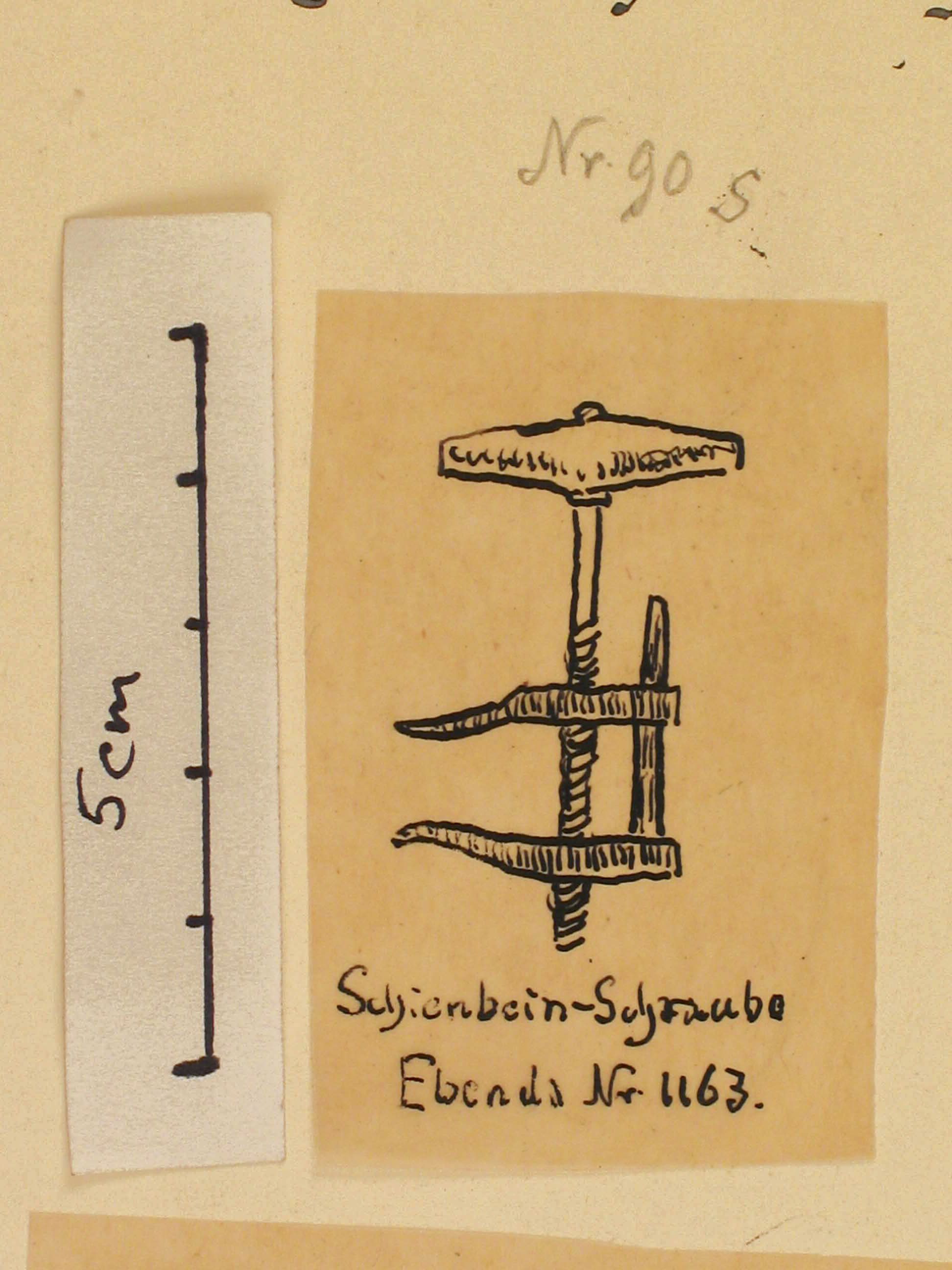 (90s) Schienenbein-Schraube, unterschrieben: "Ebenda Nr. 1163".
